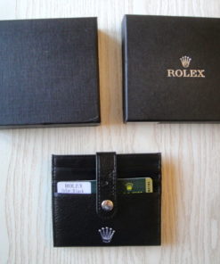 Rolex replica porta carte di credito in vera pelle di vitello con logo rolex corona in rilievo e logo rolex interno